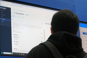 [이뉴스투데이 안경선 기자] 10일 오후 서울 강남구 코엑스에 열린 ‘2025 AI서밋서울앤엑스포’에서 한 방문객이 참가업체 부스에서 맞춤형 AI 서비스 제작 플랫폼 시연 화면을 바라보고 있다.