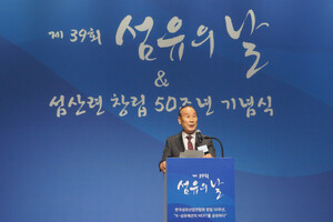 [이뉴스투데이 안경선 기자] 11일 오후 서울 강남구 섬유센터에서 열린 ‘제39회 섬유의 날 기념식’ 행사에서 최병오 한국섬유산업연합회 회장이 기념사를 하고 있다.