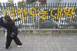 [이뉴스투데이 안경선 기자] 2026학년도 대학수학능력시험일인 13일 오전 경기 화성시 제44지구 제13시험장 서연고등학교 앞 도로에 설치된 응원 메시지 앞을 한 수험생이 지나가고 있다.
