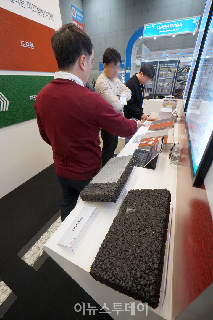 [이뉴스투데이 안경선 기자] 28일 오전 경기 고양시 킨텍스에 열린 ‘2025 국제도로교통박람회’ 삼화페인트 부스에서 방문객들이 차선용 페인트 제품을 살펴보고 있다.