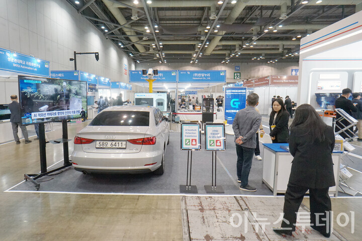 사진은 28일 오전 경기 고양시 킨텍스 ‘2025 국제도로교통박람회’ 행사장에 마련된 지앤티솔루션 부스 모습.