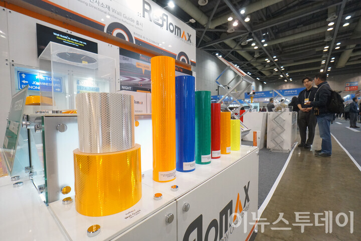 [이뉴스투데이 안경선 기자] 28일 오전 경기 고양시 킨텍스에 열린 ‘2025 국제도로교통박람회’에 다양한 종류의 도로용 반사필름이 전시돼 있다.