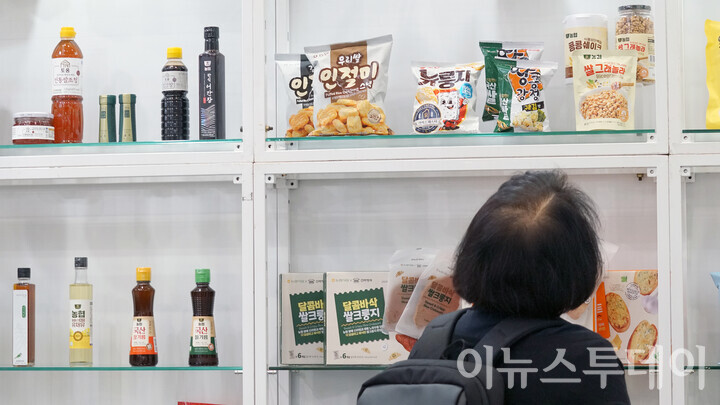 [이뉴스투데이 안경선 기자] 29일 오전 서울 강남구 코엑스에 열린 ‘2025 푸드위크 코리아’ 농협경제지주 부스에서 방문객들이 전시된 제품들을 살펴보고 있다.