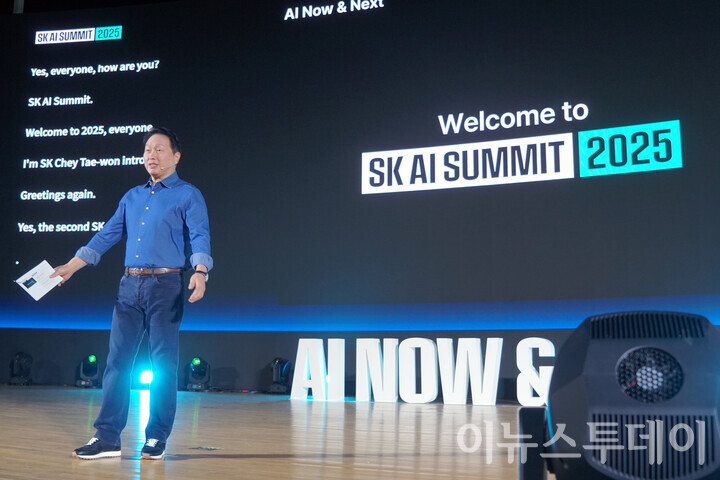 - [포토] ‘SK AI 서밋 2025’ 기조연설 나선 최태원 회장