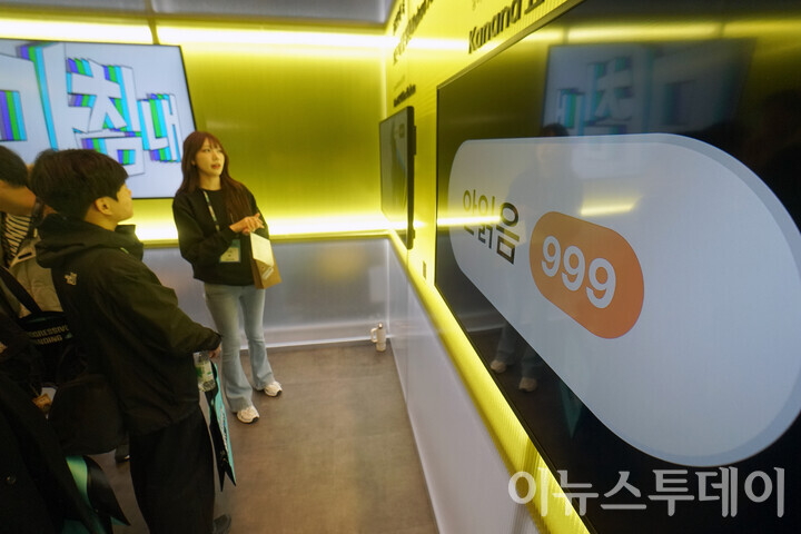 [이뉴스투데이 안경선 기자] 3일 오전 서울 강남구 코엑스에서 열린 ‘SK AI 서밋 2025’ 카카오 부스에서 관람객이 관계자에게 설명을 듣고 있다.