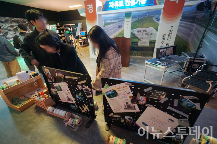 [이뉴스투데이 안경선 기자] 4일 오후 서울 성동구 LH 팝업스토어 ’메이커스 스튜디오(Maker’s Studio)’ 역사존에서 관람객들이 촬영한 즉석 사진을 꾸미고 있다.