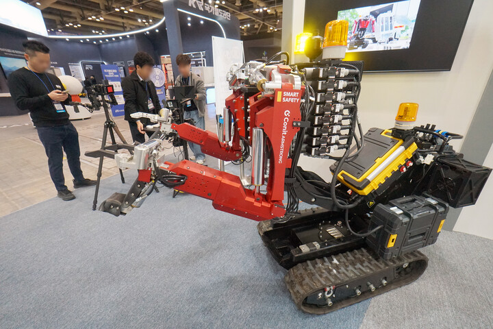 [이뉴스투데이 안경선 기자] 5일 오전 경기 고양시 킨텍스에 열린 ‘2025 스마트건설·안전·AI 엑스포’ 한국도로공사 부스에 고속도로 유지보수 로봇 ‘암스트롱’이 전시돼 있다.