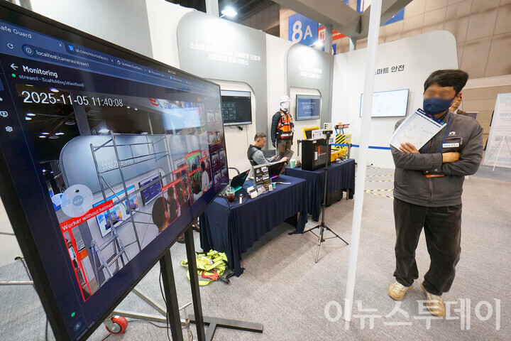 [이뉴스투데이 안경선 기자] 5일 오전 경기 고양시 킨텍스에 열린 ‘2025 스마트건설·안전·AI 엑스포’ 한국도로공사 부스에서 한 방문객이 영상기반 위험판별 디텍터를 살펴보고 있다.