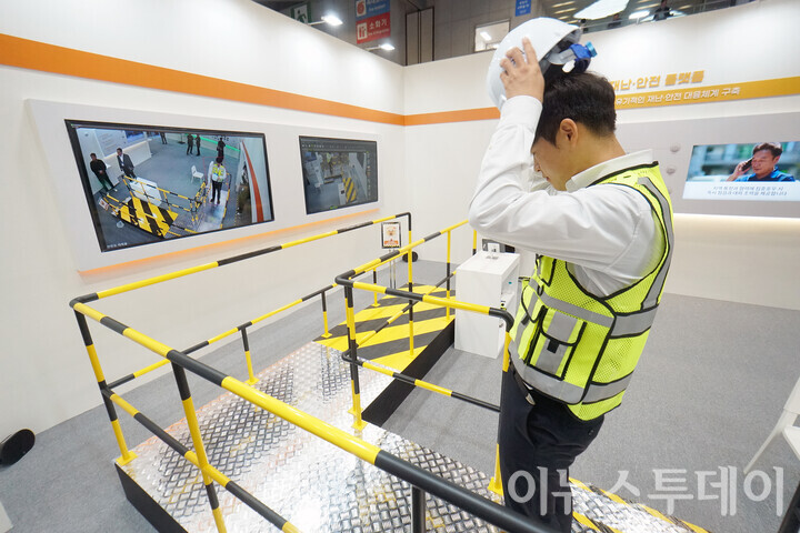 [이뉴스투데이 안경선 기자] 5일 오전 경기 고양시 킨텍스에 열린 ‘2025 스마트건설·안전·AI 엑스포’ LH 부스에서 관계자가 전시된 AI 기반 동합 안전 플랫폼 ‘늘봄 A-Eye’를 시연하고 있다.