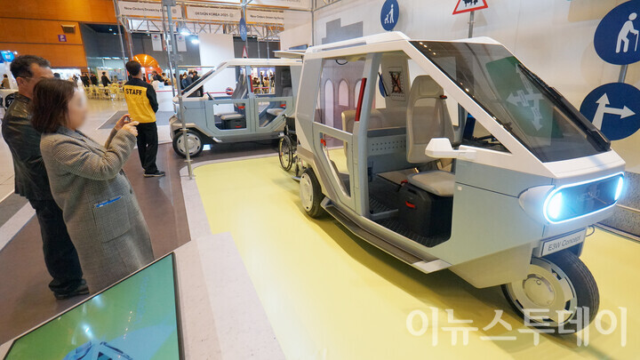 [이뉴스투데이 안경선 기자] 12일 오전 서울 강남구 코엑스에서 열린 ‘디자인코리아 2025’ 행사장에서 한 관람객이 현대자동차 부스에 전시된 인도 현지 맞춤형 전기 삼륜차 ‘E3W 콘셉트’를 살펴보고 있다.