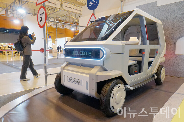 [이뉴스투데이 안경선 기자] 12일 오전 서울 강남구 코엑스에서 열린 ‘디자인코리아 2025’ 현대자동차 부스에 인도 현지 맞춤형 마이크로 모빌리티 차량 ‘E4W 콘셉트’가 전시돼 있다.