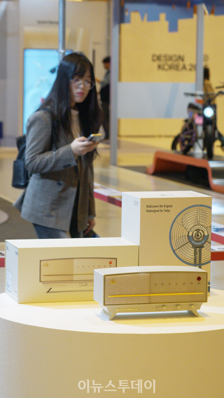 [이뉴스투데이 안경선 기자] 12일 오전 서울 강남구 코엑스에서 열린 ‘디자인코리아 2025’ 행사장에서 한 방문객이 LG전자 부스에 전시된 블루투스 스피커 ‘A-501’을 살펴보고 있다.