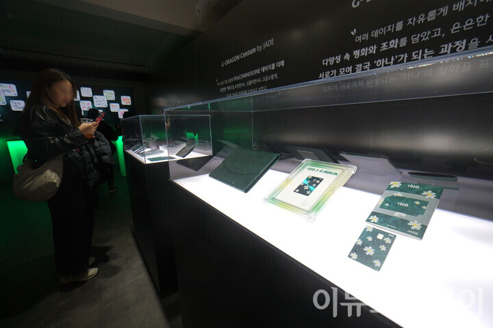 [이뉴스투데이 안경선 기자] 14일 오후 서울 성동구 ‘하나카드 X 지드래곤 팝업스토어’ VVIP프리미엄 존에서 한 방문객이 전시된 ‘지드래곤 바이 하나 제이드(G-Dragon by JADE)’를 살펴보고 있다.
