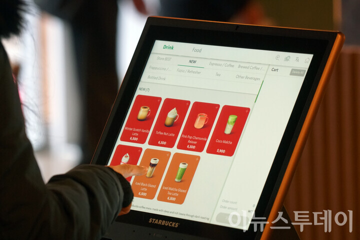 [이뉴스투데이 안경선 기자] 17일 오후 서울 중구 스타벅스 명동길점에서 한 외국인 방문객이 설치된 무인 주문기(키오스크)로 음료를 주문하고 있다.
