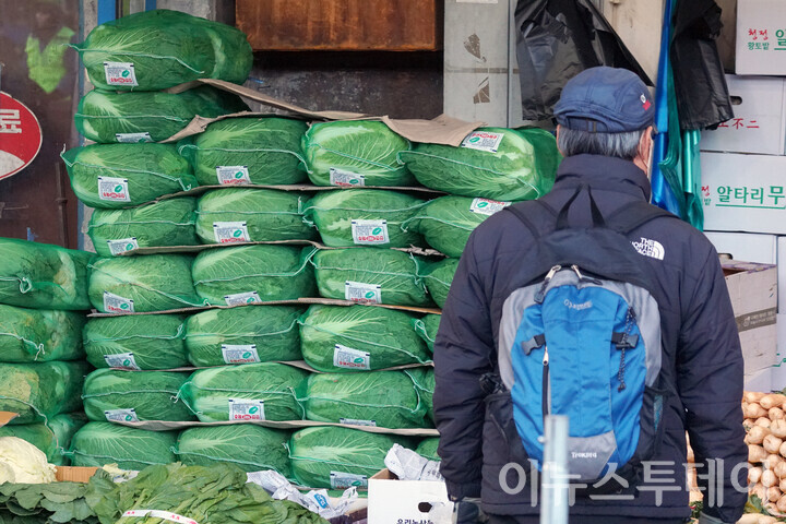 [이뉴스투데이 안경선 기자] 18일 서울 동대문구 청량리종합시장에서 한 시민이 김장재료를 고르고 있다.
