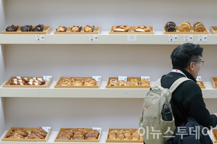 [이뉴스투데이 안경선 기자] 19일 오후 서울 강남구 코엑스에 열린 ‘제24회 서울카페쇼’에서 한 방문객이 삼양사 부스에서 냉동생지 브랜드 ‘프레팡’으로 만든 빵을 둘러보고 있다.