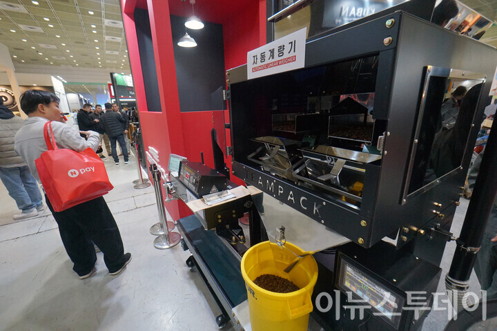 [이뉴스투데이 안경선 기자] 19일 오후 서울 강남구 코엑스에 열린 ‘제24회 서울카페쇼’에서 한 방문객이 원두 자동 계량기를 살펴보고 있다.
