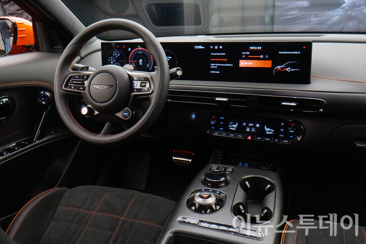- [포토] 오렌지 컬러로 포인트 준 ‘GV60 마그마’ 내장