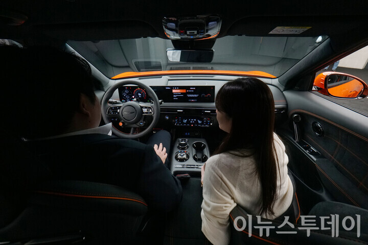 - [포토] 오렌지 컬러로 포인트 준 ‘GV60 마그마’ 내장