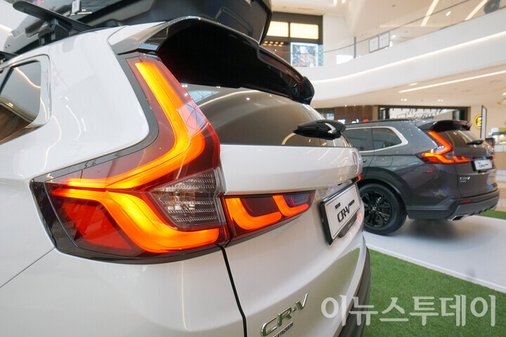 사진은 21일 오전 경기 하남시 스타필드 하남 ‘뉴 CR-V 하이브리드 출시 기념 팝업스토어’에 전시된 차량 후면부 테일램프 모습.