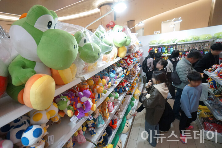 [이뉴스투데이 안경선 기자] 24일 오후 서울 송파구 롯데월드몰에 열린 ‘닌텐도 팝업스토어 인 서울’에서 방문객들이 매대에 진열된 다양한 캐릭터 인형들을 살펴보고 있다.