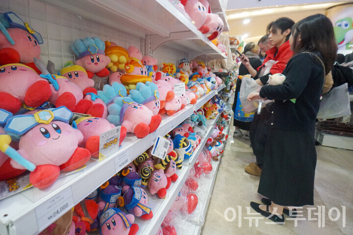 [이뉴스투데이 안경선 기자] 24일 오후 서울 송파구 롯데월드몰에 열린 ‘닌텐도 팝업스토어 인 서울’에서 한 방문객이 매대에 진열된 다양한 캐릭터 인형들을 살펴보고 있다.