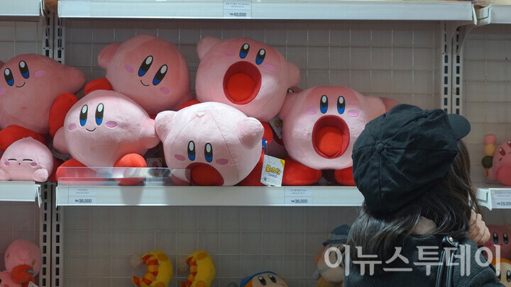 [이뉴스투데이 안경선 기자] 24일 오후 서울 송파구 롯데월드몰에 열린 ‘닌텐도 팝업스토어 인 서울’에서 한 방문객이 매대에 진열된 캐릭터 인형을 살펴보고 있다.