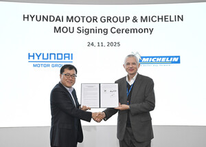 [이뉴스투데이 노해리 기자] 현대자동차·기아가 글로벌 타이어 제조 업체인 미쉐린(Michelin)과 손잡고 주행 퍼포먼스를 높이는 타이어 개발에 나선다.현대차∙기아는 24일 경기도 화성시 남양연구소에서 현대차∙기아 제네시스설계센터장 신용석 상무, 미쉐린 조지레비(Georges Levy) 아시아퍼시픽 OE 총괄 부사장 등이 참석한 가운데 기술 공동개발 업무협약식을 갖고, 차세대 모빌리티를 위한 타이어 기술 리더십 확보에 나선다고 밝혔다.이번 협약은 성공적으로 마무리된 지난 1, 2차 공동연구에 이어 체결되는 3차 협약이다. 양측은 지