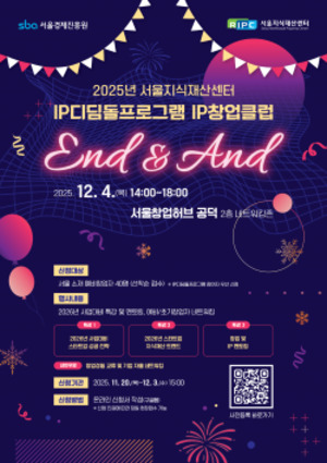 [이뉴스투데이 수도권1취재본부 권오경 기자] 서울시 중소기업의 지식재산(IP) 창출·보호·활용을 지원하는 서울경제진흥원(SBA, 대표이사 김현우) 산하 서울지식재산센터가 예비·초기 창업자를 위한 연말 프로그램 ‘IP디딤돌프로그램·IP창업클럽 End & And’를 12월 4일 서울창업허브 공덕에서 개최한다.이번 행사는 2025년 한 해 동안 운영된 지식재산 기반 창업지원 프로그램을 마무리하고, 2026년 사업 준비를 돕기 위한 실전형 교육과 네트워킹을 제공하기 위해 마련됐다.특히 IP디딤돌프로그램 연계 과정으로 운영돼 기존 교육·특허