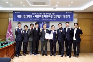 [이뉴스투데이 수도권1취재본부 권오경 기자] 서울시립대학교(총장 원용걸)와 서울특별시교육청(교육감 정근식)이 25일 대학본부 7층 총장실에서 AI 기반 교육 혁신을 위한 업무협약(MOU)을 체결했다.양 기관은 데이터와 인공지능(AI) 기술을 활용한 교육 발전을 공동으로 추진하고, 신뢰 기반의 상호 협력 체계를 구축하기로 뜻을 모았다.이번 협약을 통해 두 기관은 초·중·고 학생 및 소외계층을 위한 AI 보편교육 프로그램 개발·운영, AI 교육 전문가 양성을 위한 공동 연구 및 프로젝트 수행, AI 교육 확산을 위한 지식·자원 공유 등
