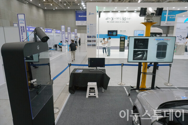 [이뉴스투데이 안경선 기자] 30일 오전 경기 수원시 수원컨벤션센터에서 열린 ‘2025 수원 ITS 아태총회’ 전시회에 마련된 지앤티솔루션 부스에 인공지능(AI) 기반 영상 분석 시스템 ‘세다(SEDA)’·‘매다(MEDA)’가 전시돼 있다.