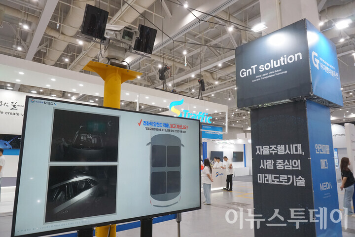 [이뉴스투데이 안경선 기자] 30일 오전 경기 수원시 수원컨벤션센터에서 열린 ‘2025 수원 ITS 아태총회’ 전시회에 마련된 지앤티솔루션 부스에 인공지능(AI) 기반 영상 분석 시스템 ‘세다(SEDA)’·‘매다(MEDA)’가 전시돼 있다.